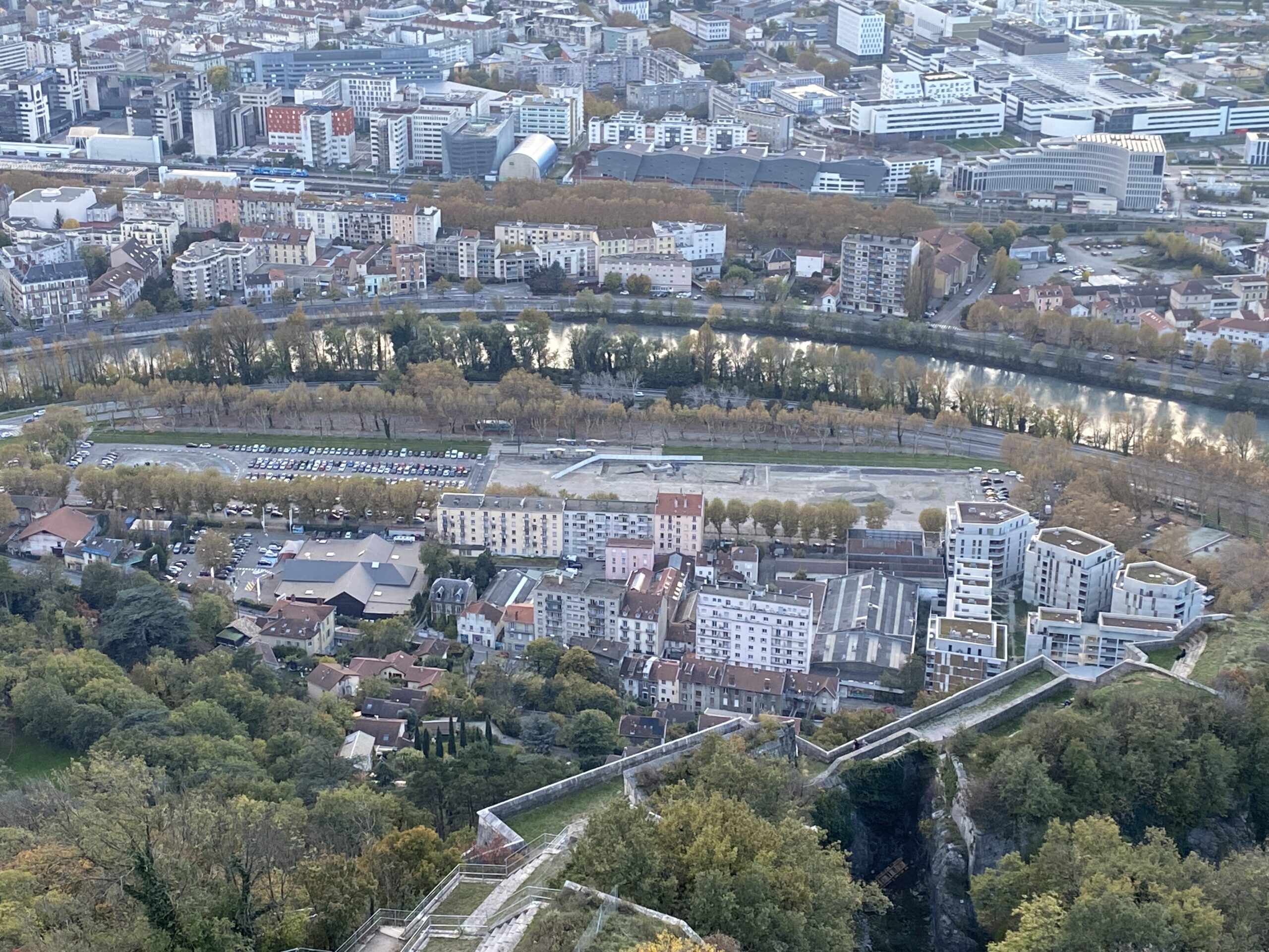 Le secteur Esplanade a été déclaré secteur projet dans les années 90 sous forme de ZAC. Entrée stratégique vers le centre-ville depuis Lyon, et à proximité d’un élément naturel remarquable : le site de la Bastille ; le secteur Esplanade montre aujourd’hui des signaux faibles. En effet, l’esplanade, utilisée pour la Foire des Rameaux, est principalement utilisée pour du stationnement, et le site est fortement segmenté entre les différents usages et modes de transport : routier, avec la présence d’une nationale, le tram, et le trafic urbain sur la route de Lyon.